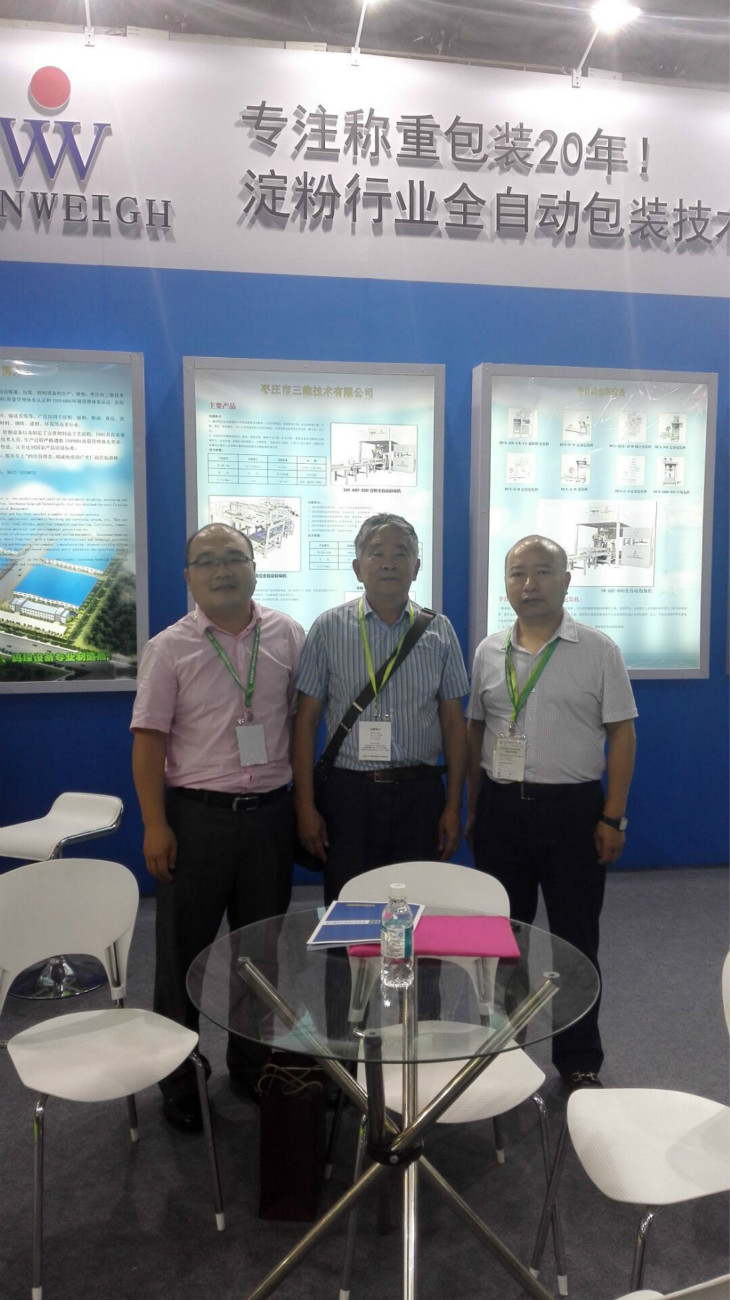 2016年6月22日,也是世界淀粉產業大會開幕第二天。棗莊市三維技術有限公司淀粉全自動包裝秤設備展會現場迎來了兩位大咖級人物,他們分別是現任中國淀粉工業協會秘書長魏旭明和前任秘書長孫明導。在公司楚經理的陪同下,秘書長魏旭明、孫明導參觀了我公司最新研發生產的淀粉全自動包裝秤設備,并對公司在淀粉包裝行業取得成績給予肯定。參觀指導后,公司楚經理與秘書長共同合影。秘書長魏旭明臨行前對公司寄予厚望,希望公司再接再厲,為淀粉行業的發展做出更大的貢獻。