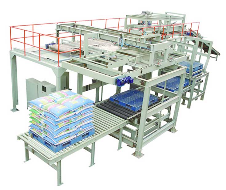機(jī)械手碼垛機(jī)應(yīng)用范圍廣,包裝袋、包裝箱等等都可以使用 高位碼垛機(jī)主要用在包裝袋的碼垛生產(chǎn)線上