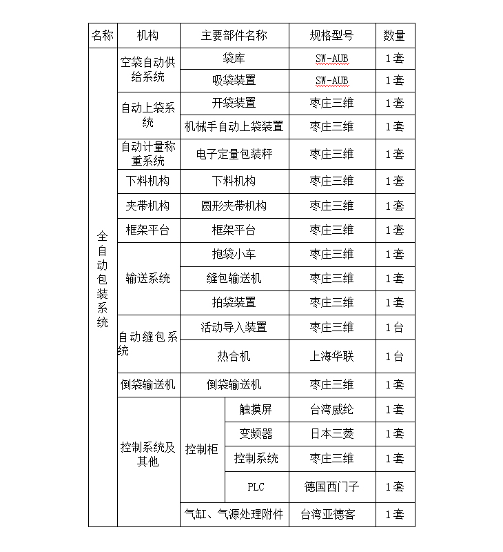 PTA全自動(dòng)包裝機(jī)主要有以下機(jī)構(gòu)構(gòu)成:定量電子秤、供袋機(jī)構(gòu)、上袋機(jī)構(gòu)、裝袋機(jī)構(gòu)、夾口整形機(jī)、收塵機(jī)構(gòu)、折邊縫包系統(tǒng)、倒袋機(jī)構(gòu)組成。詳細(xì)配置如下: