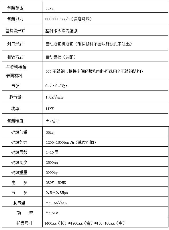 復(fù)合肥全自動(dòng)包裝高位碼垛生產(chǎn)線技術(shù)參數(shù)