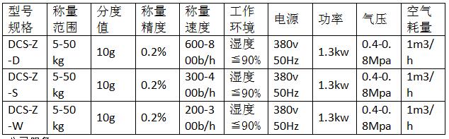 全自動(dòng)磷銨定量包裝秤參數(shù):
